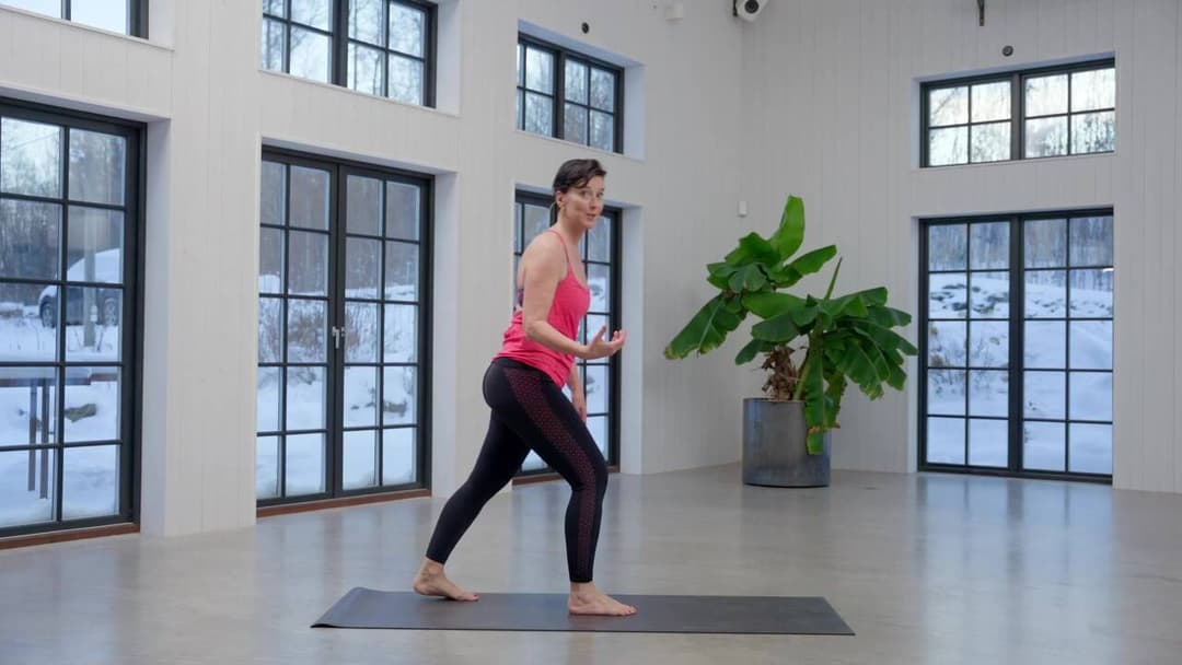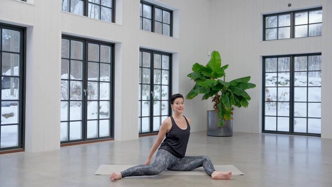 Vi kommer därför lägga primärt fokus på styrka i höften, och bäckenet, jobba med inåt- och utåtrotationer för att öka främja rörligheten och cirkulationen, samt väva in lekfull balans!