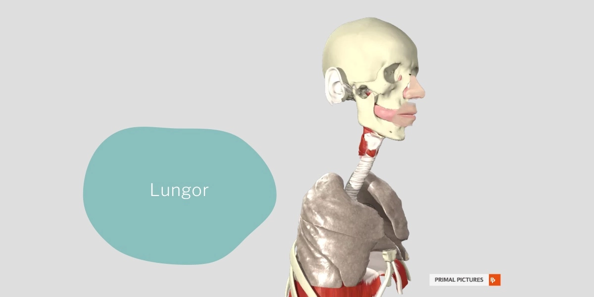 På bilden här nedan syns bröstkorgen med revbensbågen framtill. I nederkant på bröstkorgen ligger Diafragma. Ovan Diafragma syns Lungan. Framför halsryggraden ligger Luftstrupen.