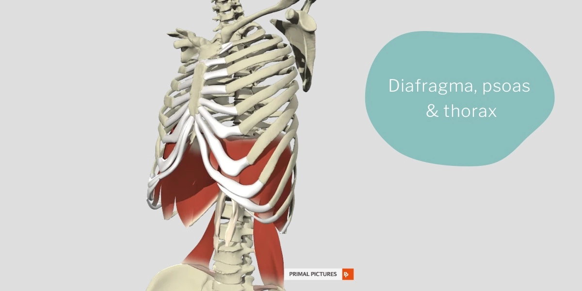 På bilden här nedan syns Psoas muskeln, Diafragam och Bröstkorgen (Thorax).
