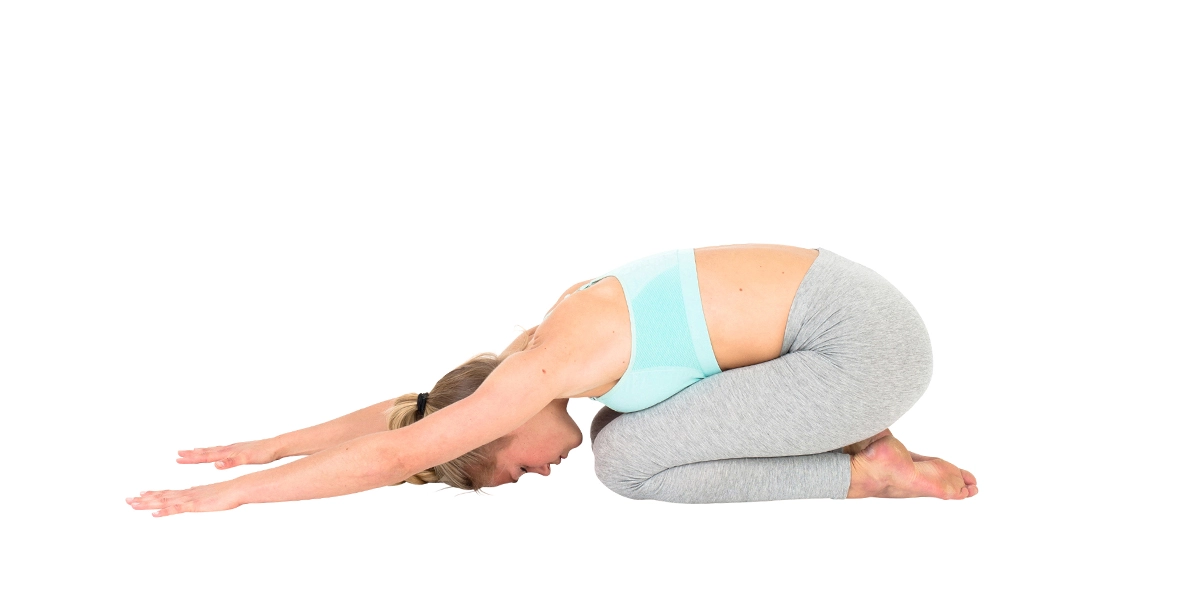 - Vandra dina händer framåt samtidigt som du lutar överkroppen fram, tills pannan landar på mattan.