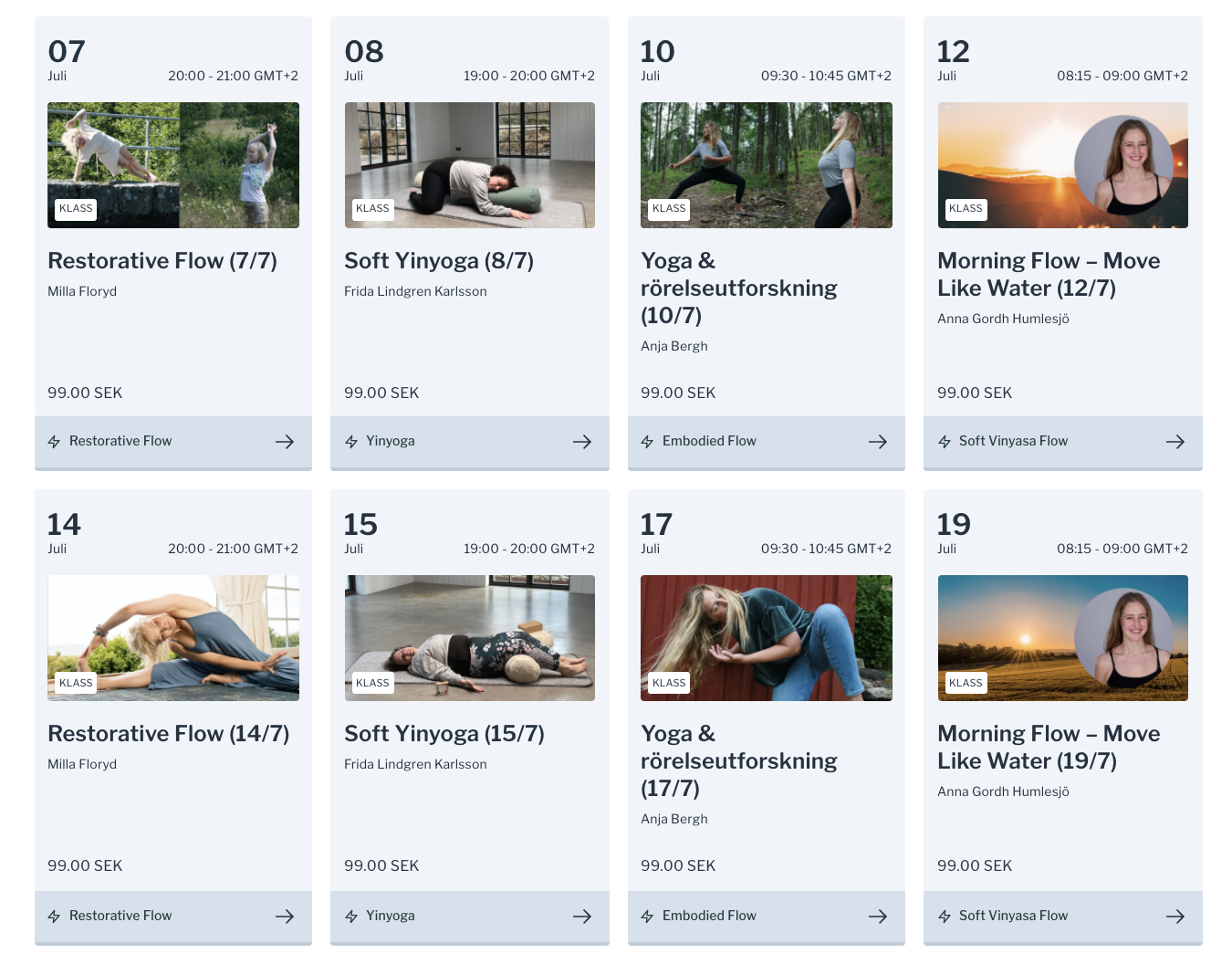 I juli kan du njuta av mjuka och utforskande flöden i olika former – perfekt för att landa i din närvaro och känna in kropp och själ. Vilka klasser lockar dig?