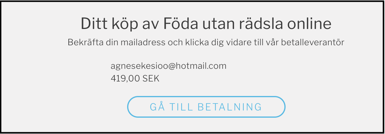 Du är nu redo för betalning. Klicka på "Gå till betalning" för att slutföra ditt köp. När köpet är genomfört kommer du att få en betalningsbekräftelse via mail.