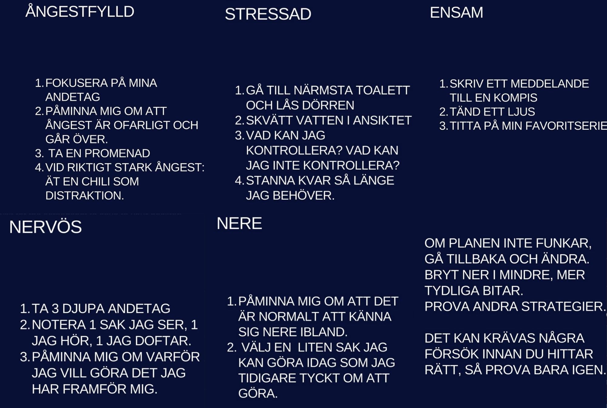 Nu ska vi dyka in i metoder för att lindra flera olika starka känslor i stunden, men också först och främst förstå – vad är det jag känner och varför?