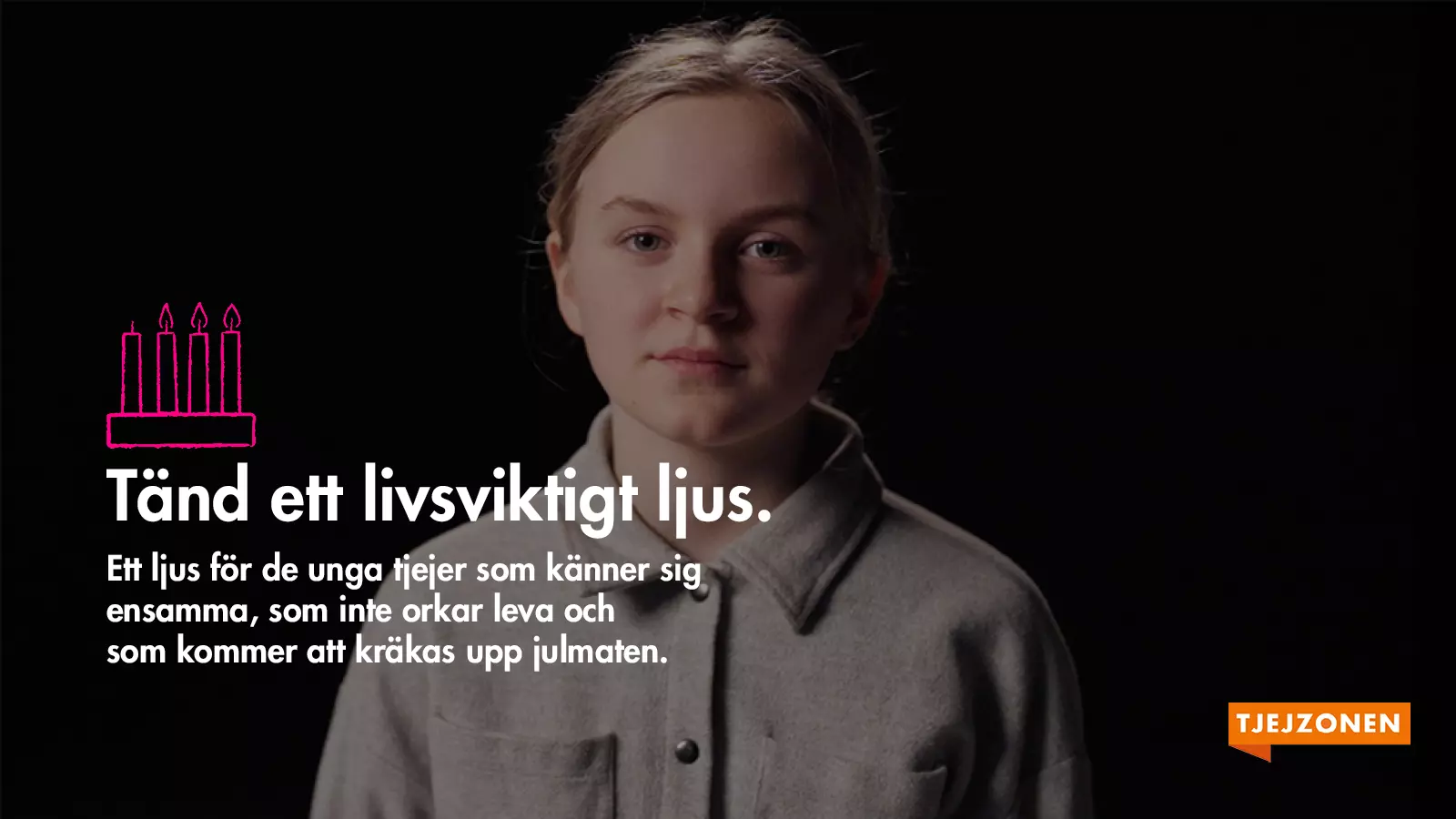 I Tjejzonens adventsljusstake är ett av fyra ljus släckt, för att symbolisera att var fjärde* ung tjej inte mår bra. Med din hjälp kan vi tända det sista ljuset. Varje kväll, året runt och hela jullovet har Tjejzonen öppet för unga tjejer som behöver någon som lyssnar och stöttar. Delta här.