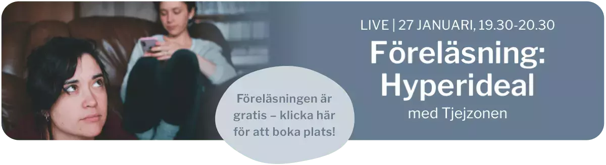 Den 27 januari håller Tjejzonen en föreläsning om hyperideal via Yogobe LIVE. Föreläsningen riktar sig till dig som är tjej, närstående till en tjej eller vill veta mer om hur man kan bemöta tjejer 10-25 år. Vi ger inblick i ungas tankar om utseende, kropp och jämförelse med andra, och delar verktyg för att bemöta dessa känslor. Föreläsningen leds av Ida Olihl, sakkunnig inom ätstörning och ansvarig för Tjejzonens anhörigstöd och ätstörningsrelaterade stöd, och Anna-Maria Ahlgren, utbildningsansvarig på Tjejzonen.