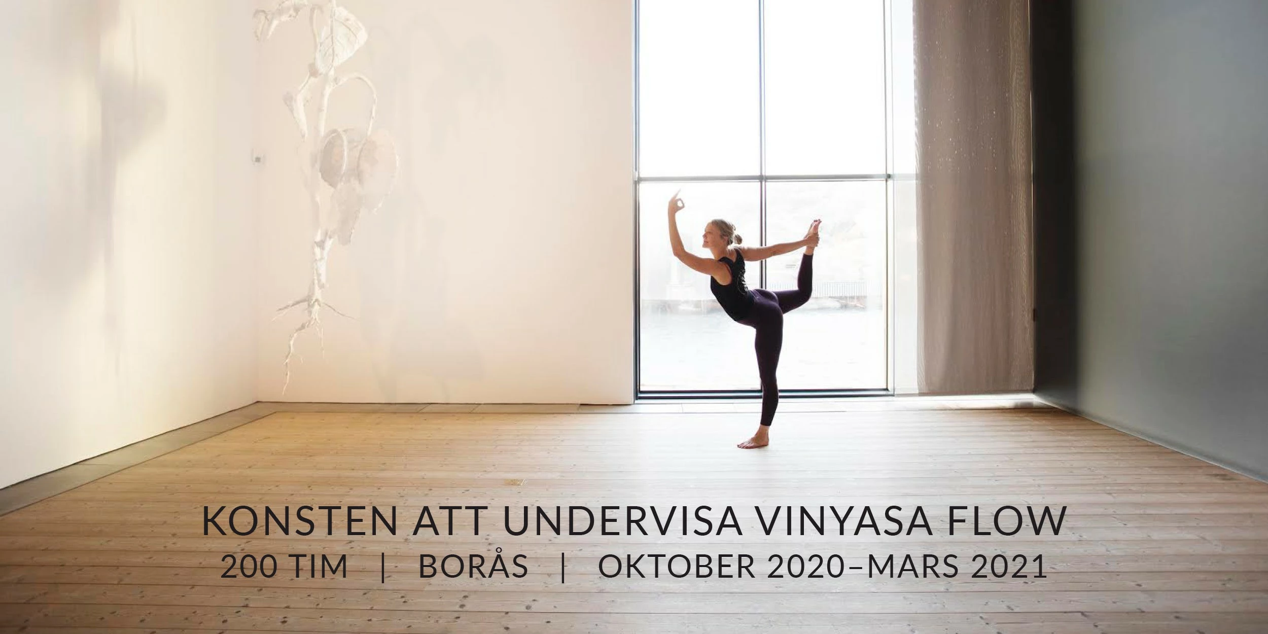 Konsten att undervisa Vinyasa Flow är en 200-timmars certifierad (Yoga Alliance) utbildning i fyra delar. Kursen passar dig som älskar vinyasa och vill dela med dig av din passion till andra genom skickligt ledarskap, vackra kreativa klasser och gedigen kunskap inom ditt ämne. Utbildningen äger rum i Borås i samarbete med nya Flowfabriken (öppnar i mars–april 2020).