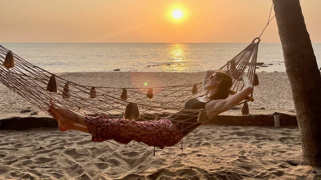 Låt bilden och känslan av en hängmatta vagga dig till ro och landa på en trygg plats.