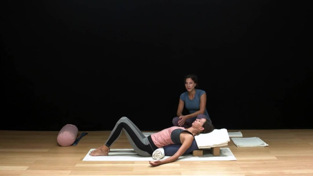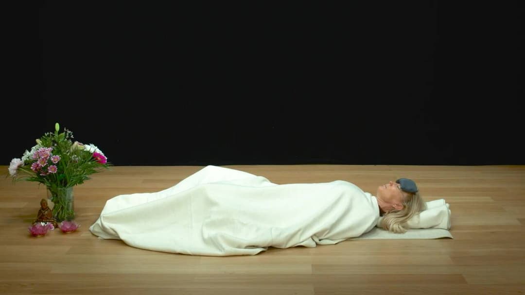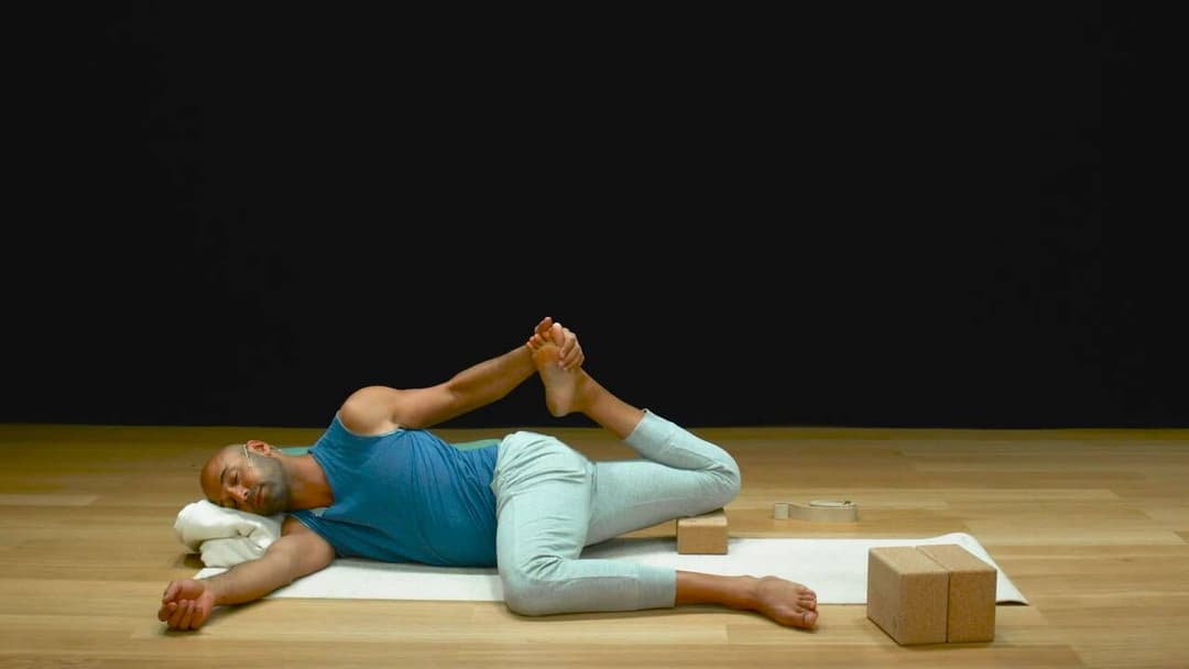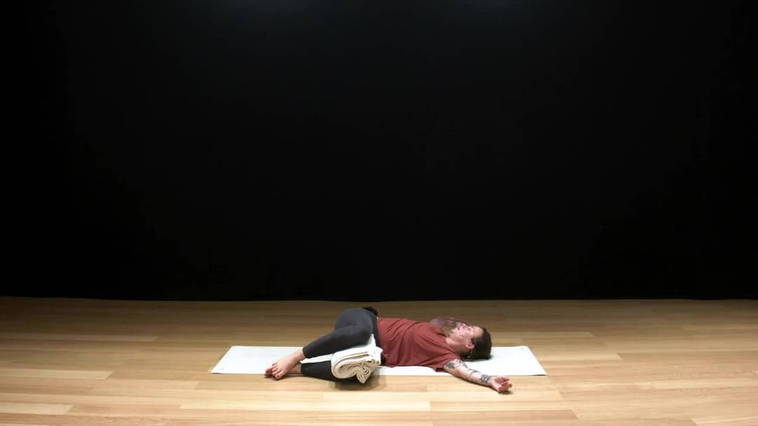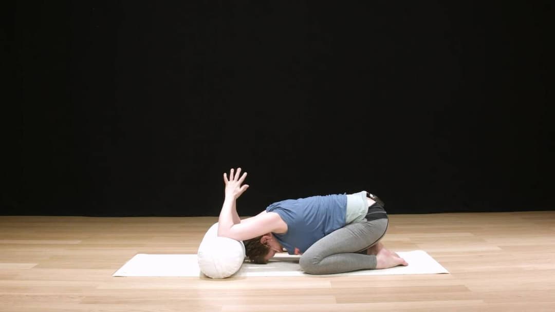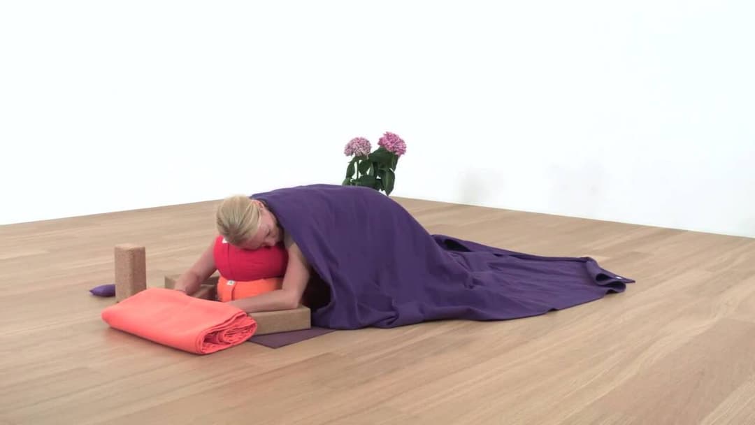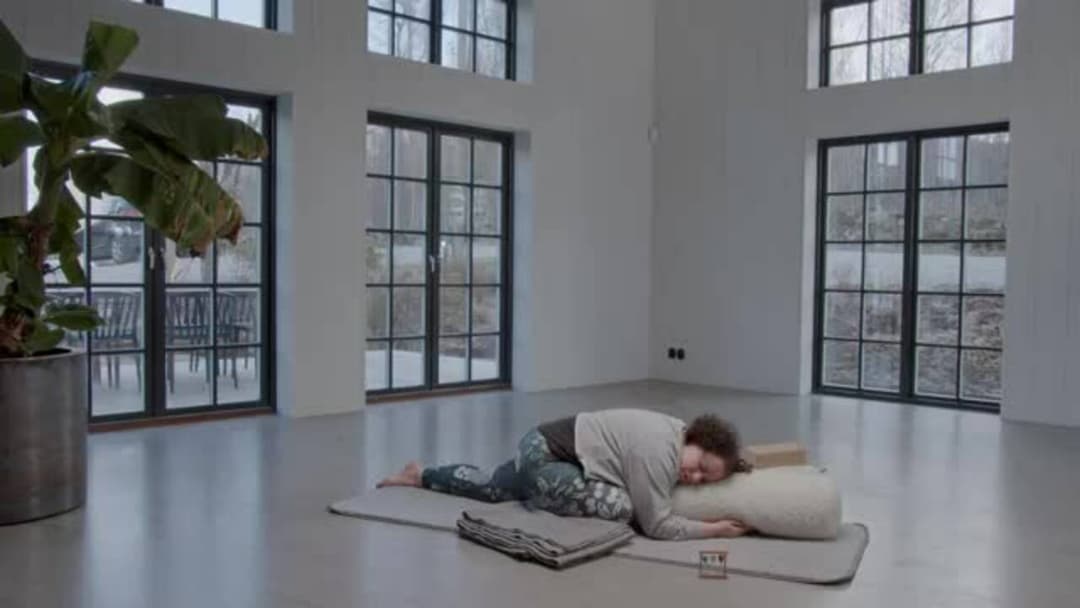 Ha gärna en filt, yogablock/tjocka böcker och ett bolster/kudde till hands.