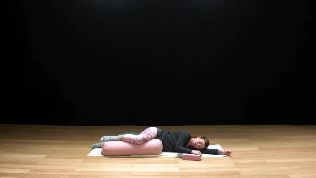 En stund för dig själv där du får möjlighet att landa och slappna av i kroppen. Skönt efter en vaken natt eller mycket bärande en stressig dag. Ha gärna kuddar/bolster för att stötta upp kroppen till hands likväl som en mjuk filt. Stäng av mobilen - det här är din stund.