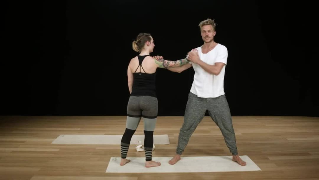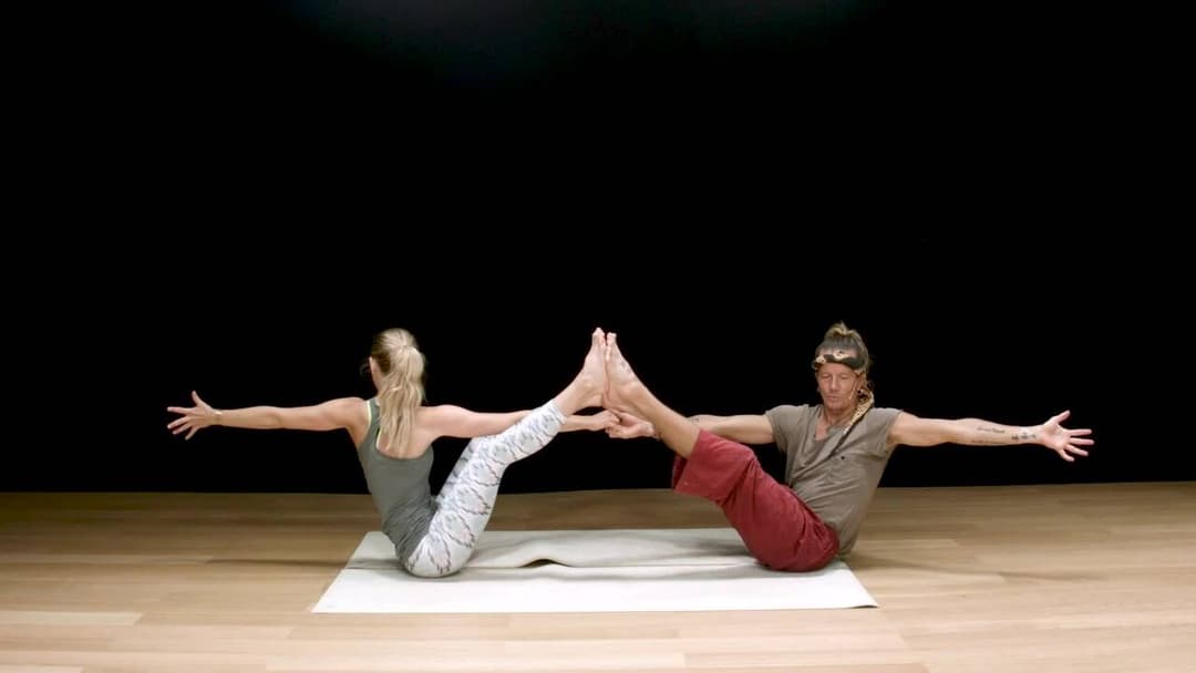 Utmana dig och din kompis i denna fysiska paryoga där ni med hjälp av varandra övar både styrka och rörlighet.