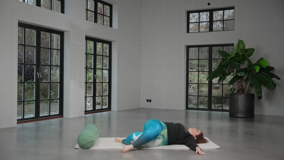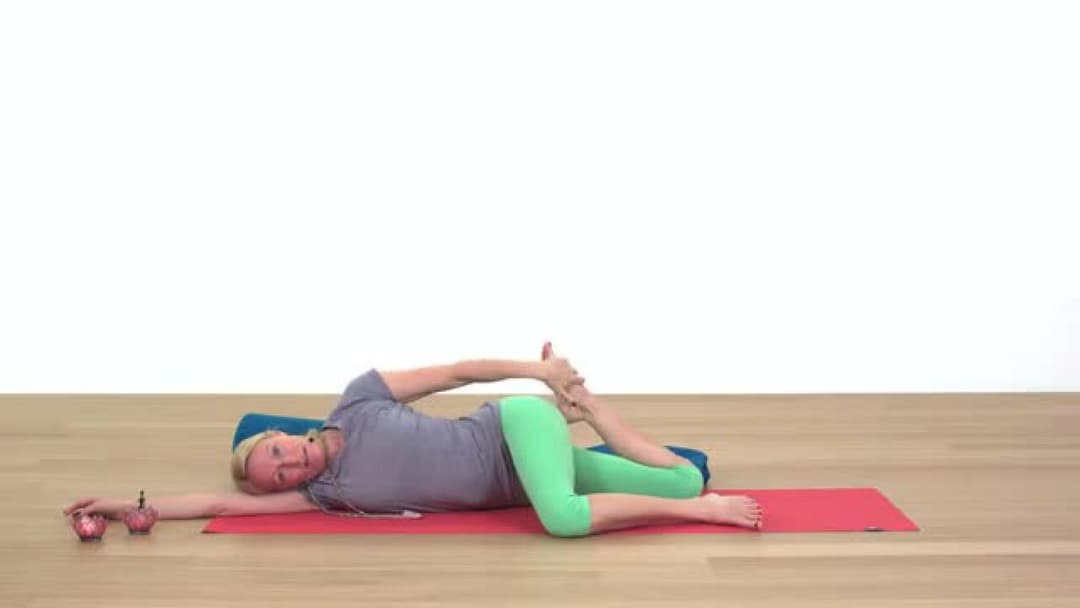 En liggande klass med fokus på rörelser som börjar i nacken går ned längs med ryggraden hela vägen till höften.