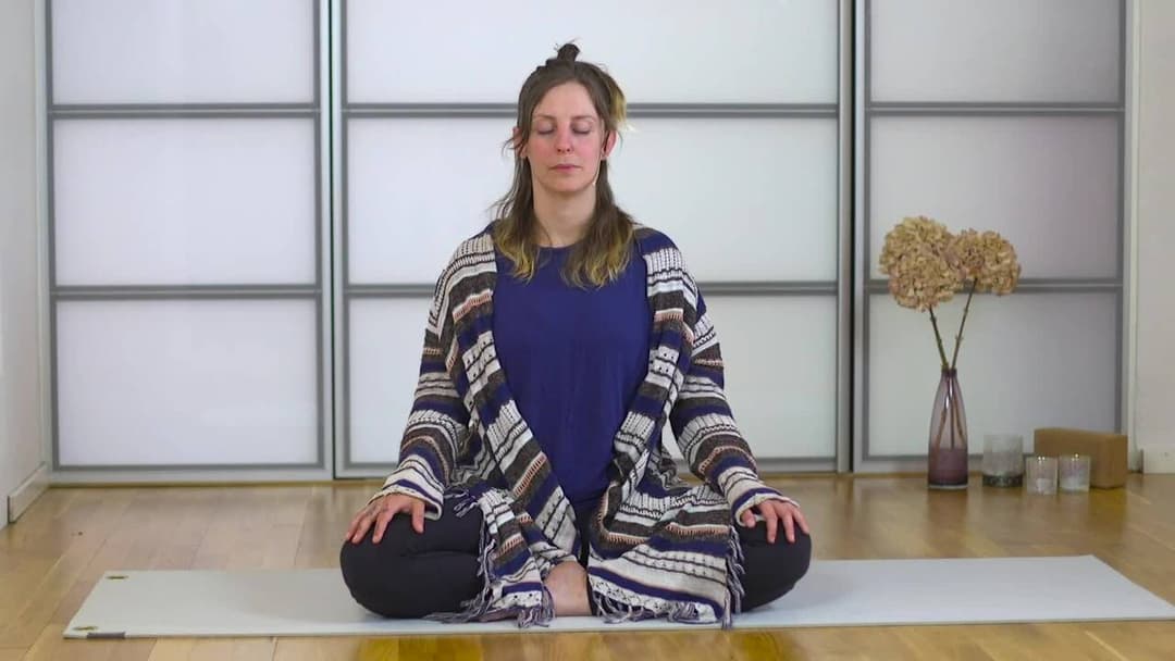 Använd andetaget och kroppen som verktyg att landa i nuet med hjälp av ett stillsamt flöde.