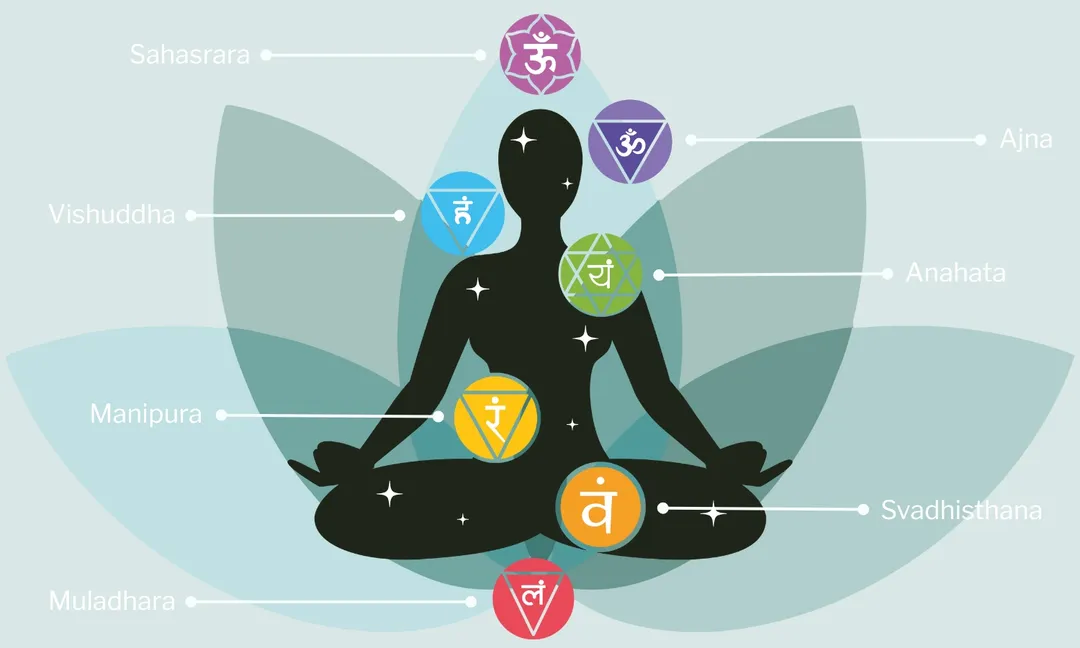 Beskrivningen av chakrasystemet kan variera mellan olika traditioner inom yoga, men den mest spridda modellen i väst utgår från sju huvudsakliga energicenter. Dessa är placerade framför ryggraden, från ryggslutet till hjässan. Ordet chakra kommer från sanskrit och betyder hjul, och varje chakra symboliserar olika aspekter av energi, medvetande och livserfarenhet. De kopplas bland annat till kroppsdelar, körtlar, nervsystemets funktioner, element, färger, mantran samt mentala, känslomässiga och andliga kvaliteter.